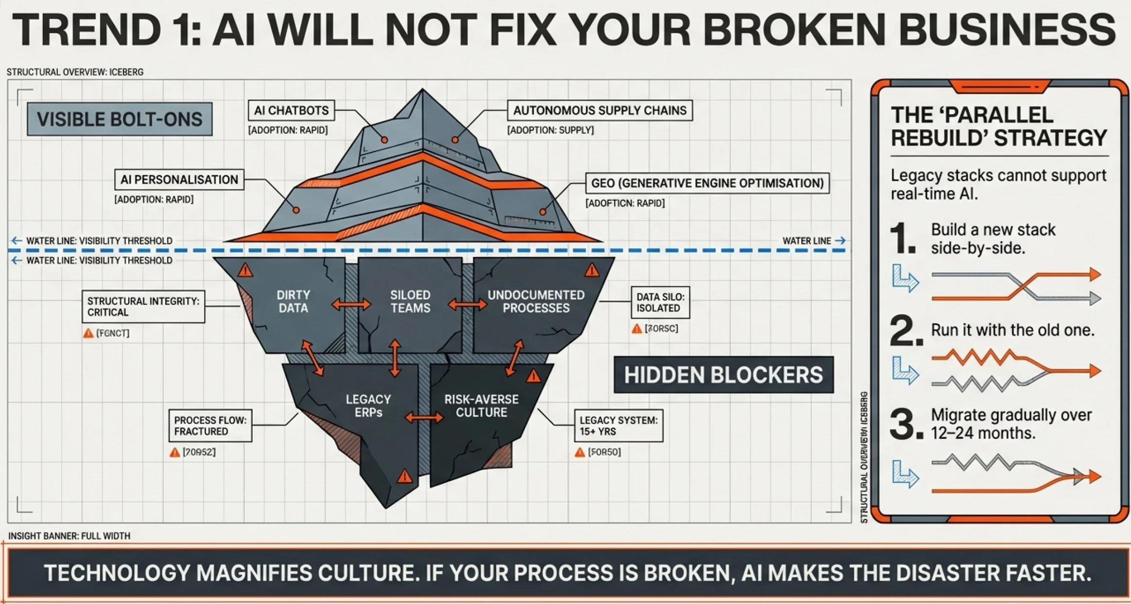 The Insight: The winners in 2026 won't be the companies with the most expensive GPU clusters. They will be the companies that did the boring, unsexy work of cleaning their data and mapping their customer journeys.
